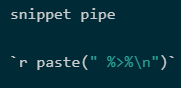 - %>% snippets을 만들어 낼 수도 있다. 다만 R studio에서 제공해주는 %>%와는 조금 다르다.(indent가 이루어 지지 않고 새로운 줄이 생길뿐이다.)