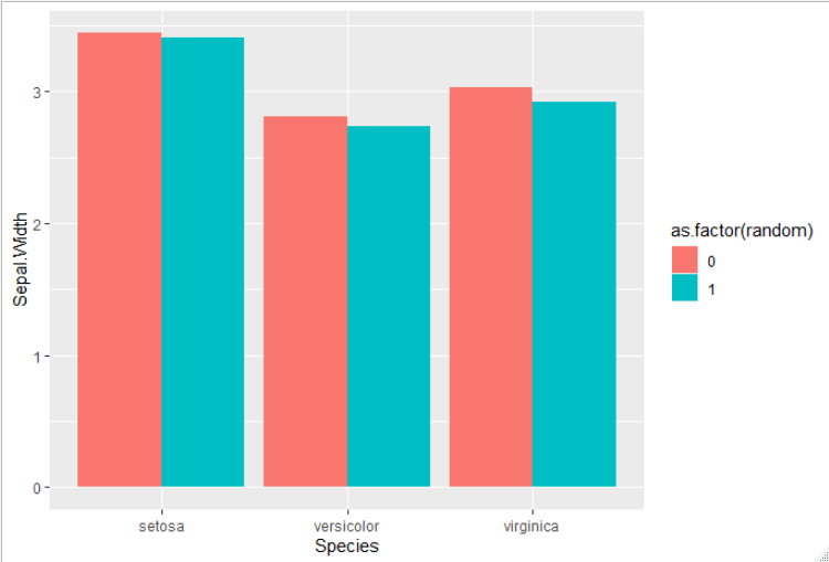 stat_summary(aes(x= Species, y=Sepal.Width, group = random, fill = as.factor(random)),